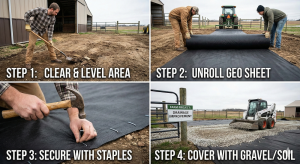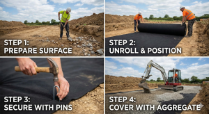 - Step 4: Add cover material — Place soil, sand, or aggregates carefully without dragging machinery directly on the sheet.